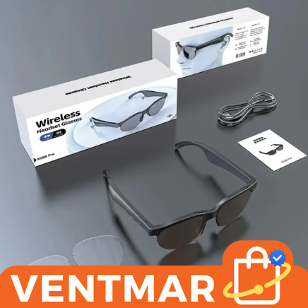 Los Lentes Bluetooth Wireless Headset Glasses permiten escuchar música, atender llamadas y usar asistente de voz sin necesidad de auriculares. Incorporan controles laterales integrados y conexión inalámbrica compatible con Android e iPhone.